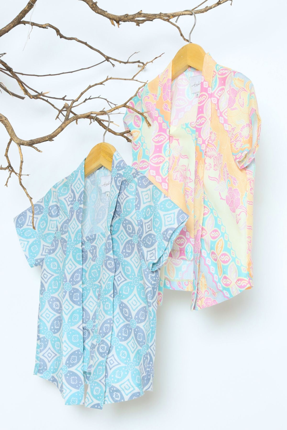 Available in two beautiful batik colors — blossom pink and sky blue — this top brings a fresh twist to the timeless kebaya silhouette.