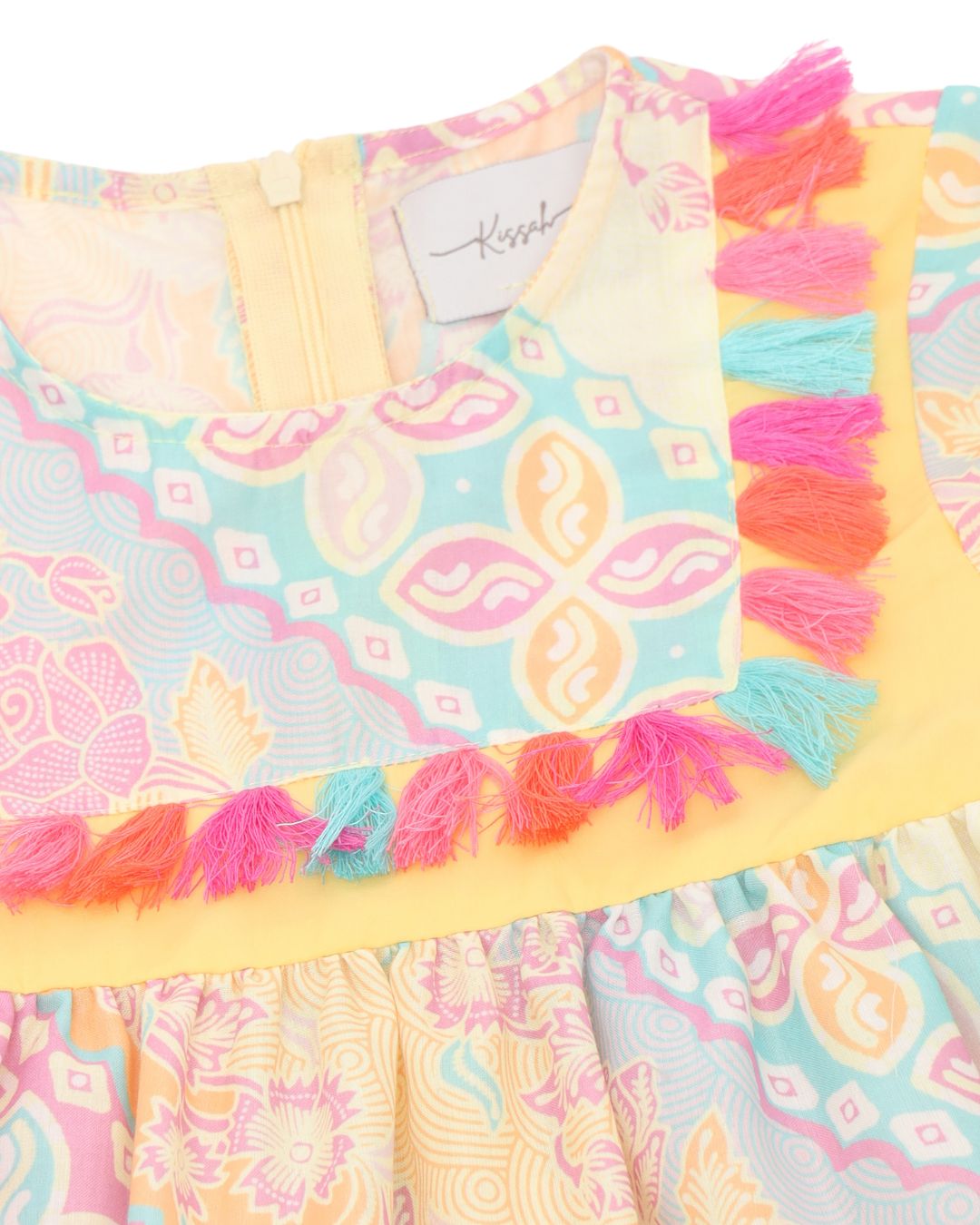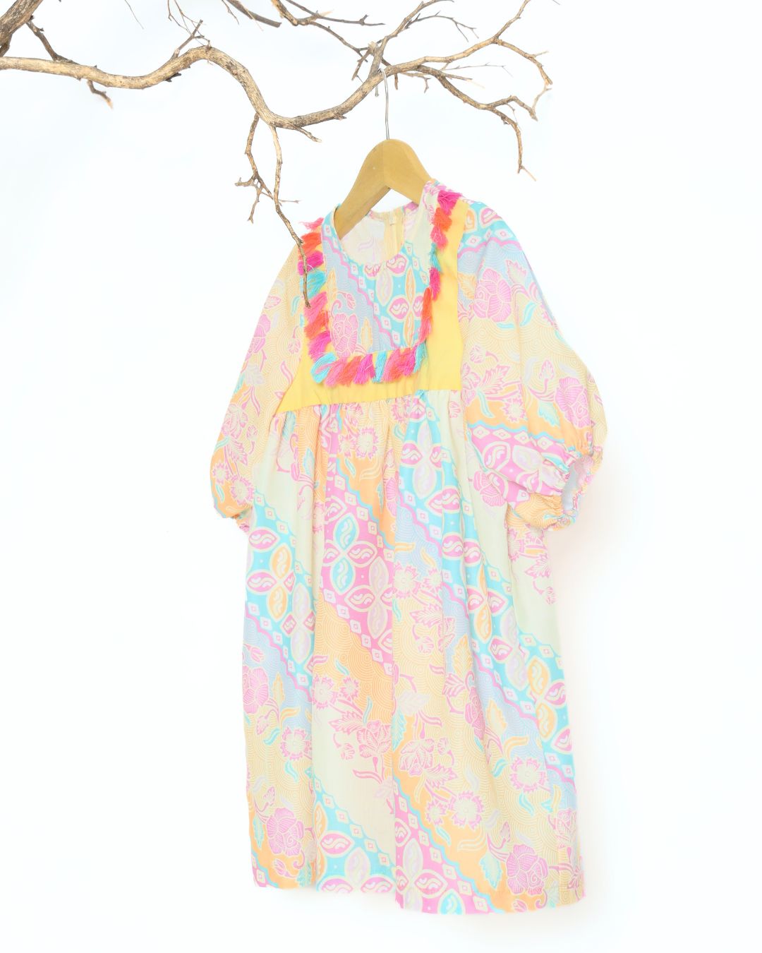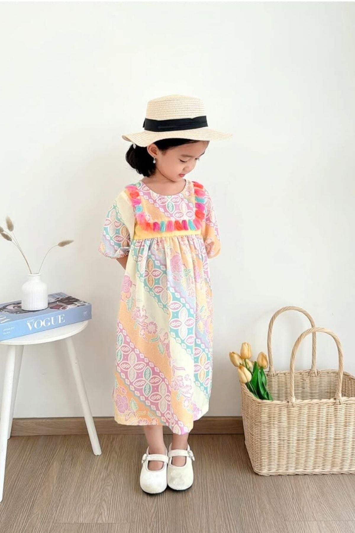 Let your little one shine in the Martha Dress — a colourful celebration of heritage and play. Made from soft, breathable batik fabric, this dress is designed for comfort on sunny days and special outings alike. The highlight? A fun fringe around the neckline that adds a playful charm to every twirl. Whether it’s for a family gathering or a memory-filled weekend, the Martha Dress brings a smile to every moment.