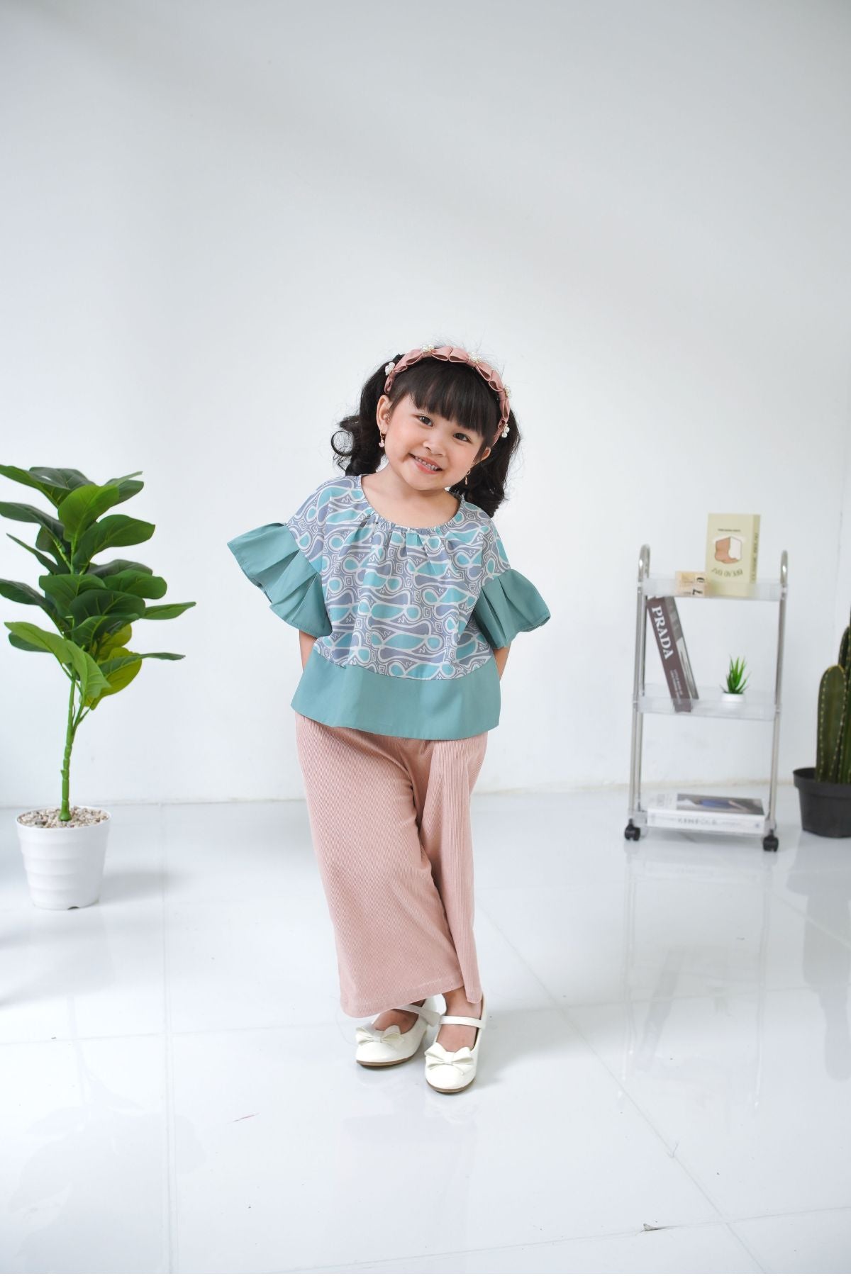 The Dian Top is where tradition meets a modern twist. Featuring soft, colorful batik fabric, this top is designed with a sleek, folded sleeve detail that adds a subtle yet stylish flair — perfect for girls who love to dress up with ease and comfort.