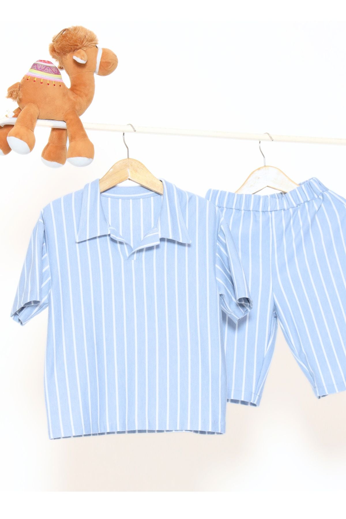 Say hello to our best-selling boys’ set – the Kiko Set! Designed with soft, breathable fabric that absorbs sweat and keeps your little one cool all day long, this blue striped top-and-shorts combo is perfect for play, strolls, or relaxed weekends.