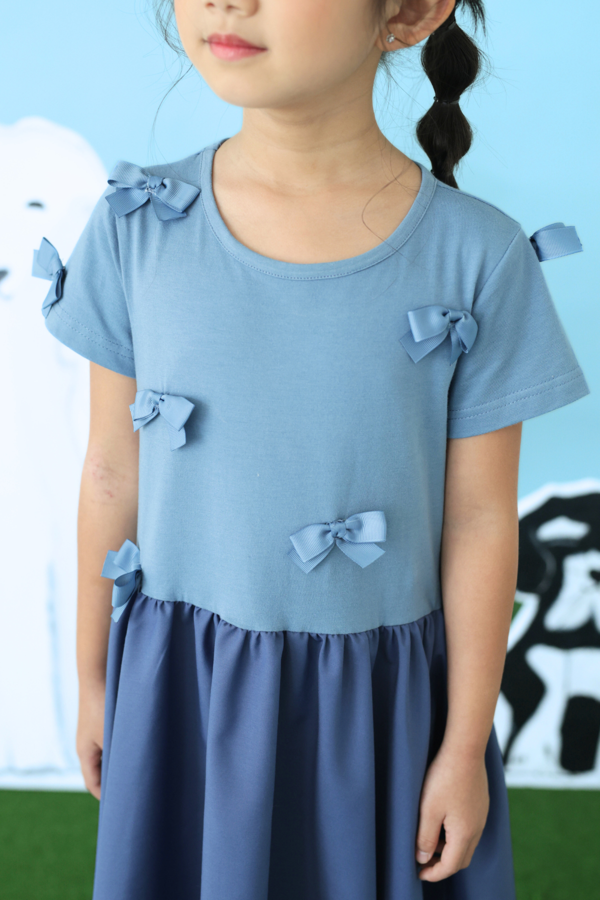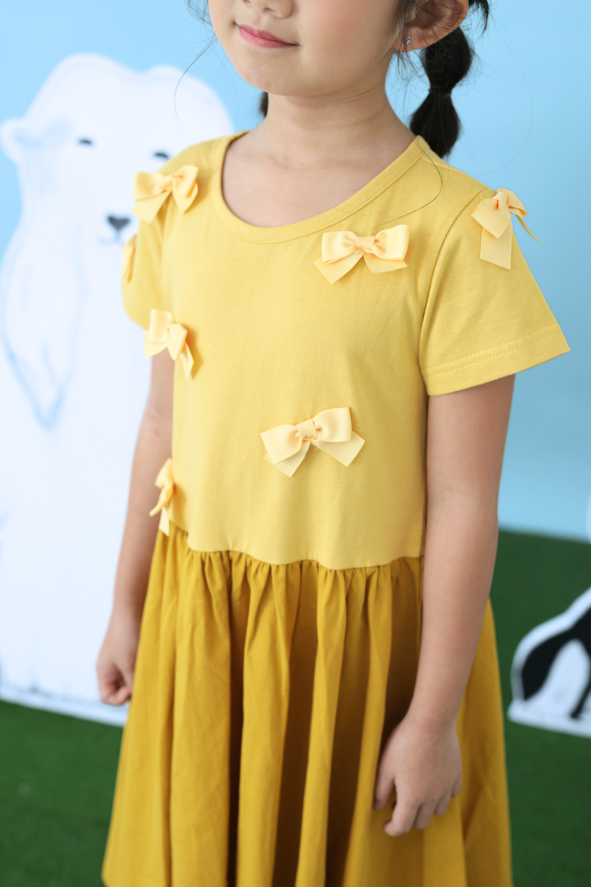 Discover our delightful girl's dress featuring a luxuriously soft cotton shirt top adorned with charming small bow details, artfully scattered for a touch of whimsy. This enchanting dress comes in two vibrant hues: serene blue and sunny yellow, perfect for any occasion. Designed with comfort and style in mind, your little one will look and feel fabulous all day long. Elevate her wardrobe with this versatile and adorable dress, where elegance meets playful charm. Don't miss out on this must-have piece, a delightful blend of comfort and fashion!