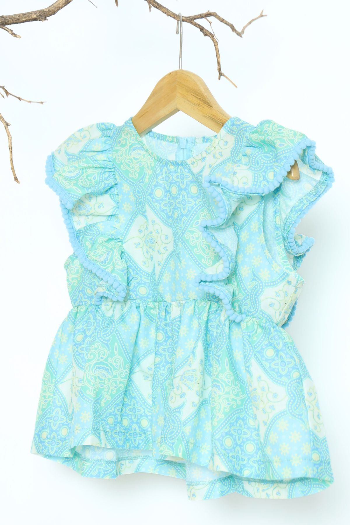 Let your little one shine in the Sartika Top, a vibrant batik blouse designed for everyday joy and special moments. Made from soft, breathable fabric, Sartika features delicate frill sleeves with a touch of fun – pompom lace details that bring out her playful spirit.