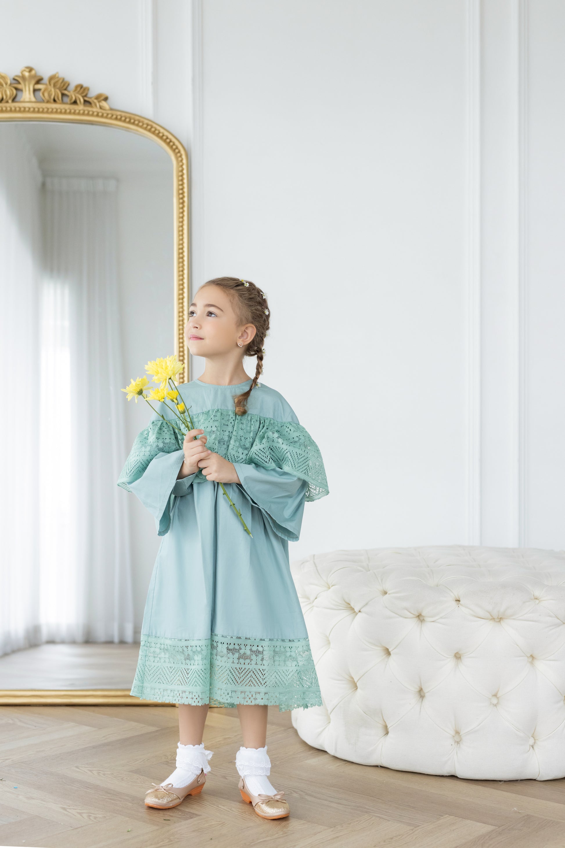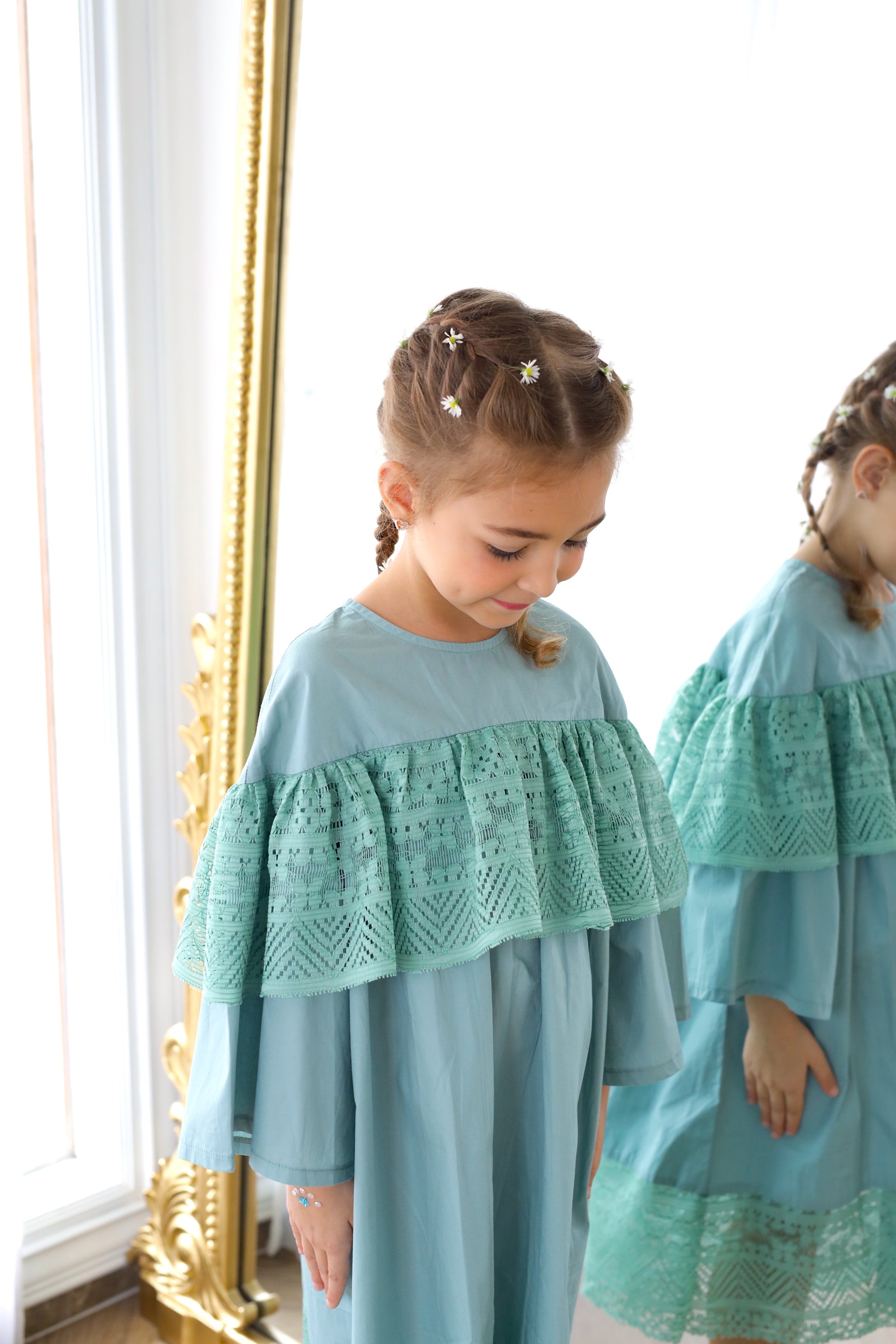 - Walk with confidence in this soft beautiful flowy dress. In a midi length with easy pull-over style, plus beautiful lace details at the shoulder and bottom, it's a must for Ramadhan wear.