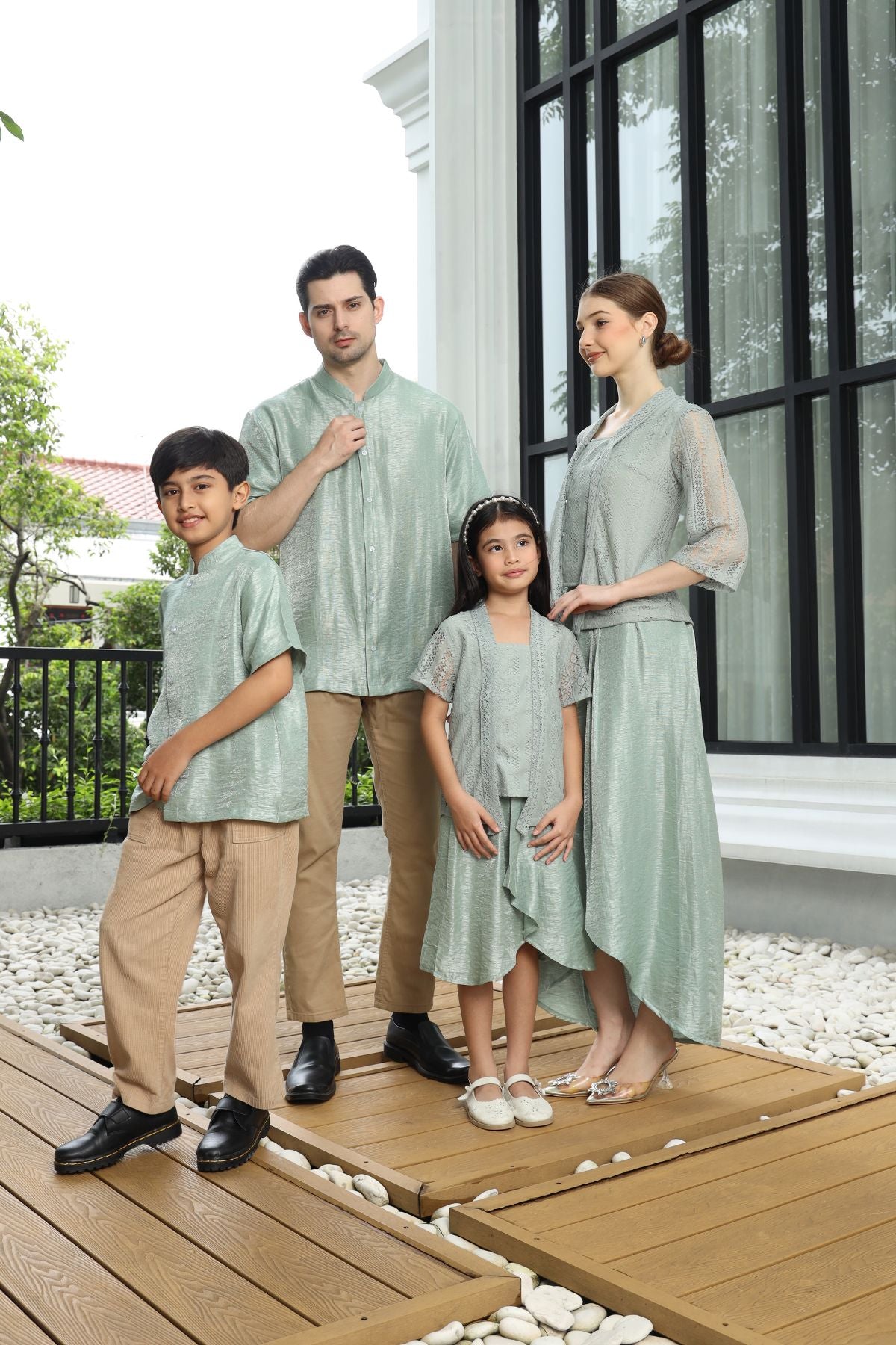 Introducing Zahid Man, a timeless piece designed for fathers who value simplicity, comfort, and meaningful tradition. Crafted in the same beautiful sage green as Zahid Boy, this design completes the family look with effortless harmony alongside Yasmin Lady and Yasmin Girl.